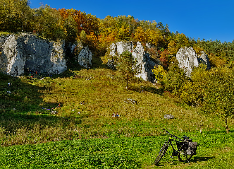 Kolejną atrakcyjną propozycją na Jurze Krakowsko-Częstochowskiej jest pętla rowerowa prowadząca przez dwie wyjątkowo malownicze doliny: Dolinę Będkowską oraz Dolinę Kobylańską. To stosunkowo krótka, ale bardzo urozmaicona trasa, idealna na spokojną, rekreacyjną wycieczkę. W Dolinie Będkowskiej na szczególną uwagę zasługuje Sokolica, czyli imponująca formacja skalna, będąca jednym z symboli doliny i popularnym miejscem wspinaczkowym. Kolejnym ciekawym punktem jest Wodospad Szum, jeden z nielicznych naturalnych wodospadów na Jurze, który stanowi przyjemne miejsce na krótki odpoczynek. Na trasie warto również zwrócić uwagę na skałę Żabi Koń o oryginalnym kształcie, która stanowi ciekawy akcent krajobrazowy w Dolinie Kobylańskiej.