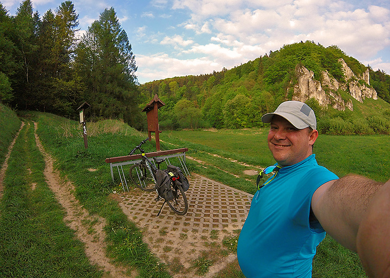 Wycieczkę rozpoczynamy w Giebułtowie, skąd wyruszamy Szlakiem Doliny Prądnika. Po 30 minutach dojeżdżamy do zamku w Ojcowie. W tym miejscu warto zwrócić uwagę na ciekawą historycznie Kaplicę Na Wodzie. Po kolejnych 30 minutach pedałowania meldujemy się pod zamkiem Pieskowa Skała, gdzie zatrzymujemy się szybkie zdjęcie pamiątkowe pod Maczugą Herkulesa. W tym miejscu skręcamy w prawo w kierunku Doliny Zachwytu, którą osiągamy po mniej więcej 20 minutach. Przejeżdżamy przez Wolę Kalinowską by po 30 minutach dojechać do wiatki w Sąspowie. W tym miejscu chwilę odpoczywamy. Do Ojcowa zjeżdżamy 20 minut przez malowniczą Dolinę Sąspowską. Tu skręcamy w prawo z powrotem na Szlak Doliny Prądnika, którym wracamy 30 minut do Giebułtowa.