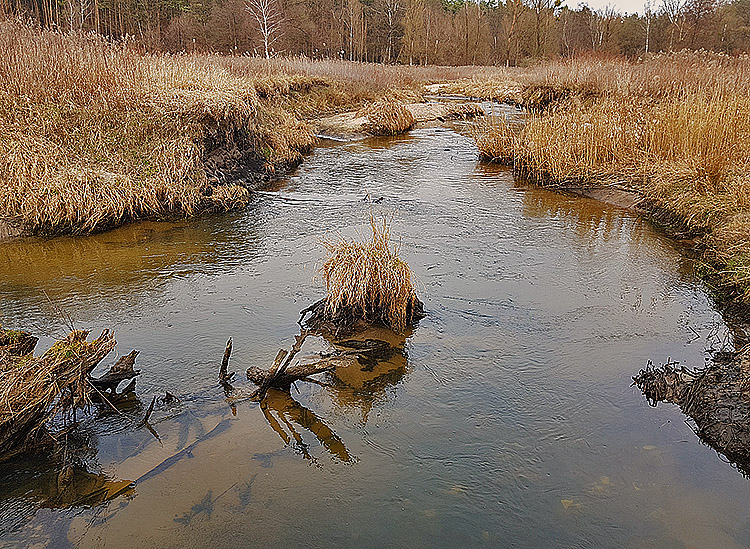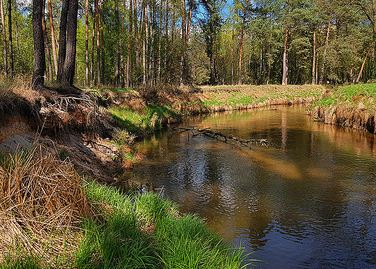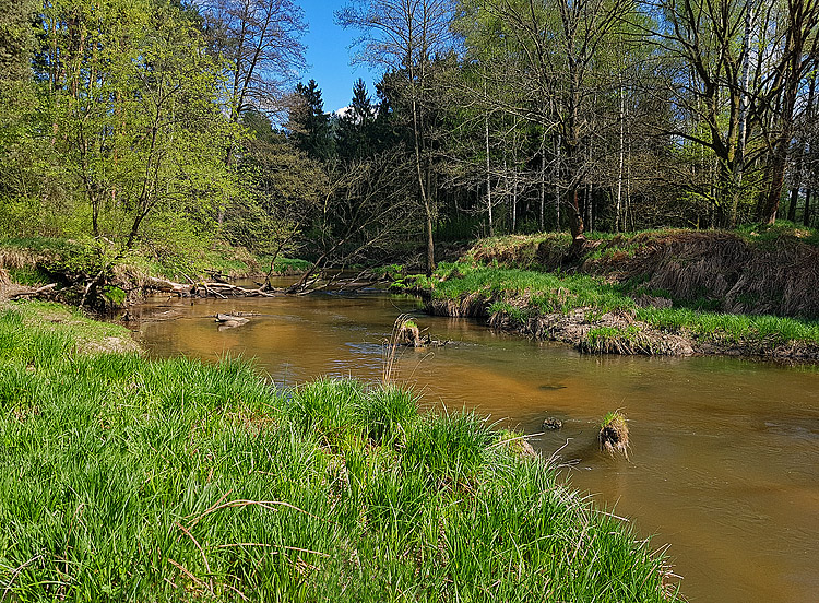 W dalszym biegu rzeka przepływa przez obszary bardziej przekształcone przez działalność człowieka, jednak wciąż można znaleźć fragmenty o naturalnym charakterze. Zmienność koryta, obecność zakoli oraz różnorodność dopływów wpływają na urozmaicenie środowiska wodnego.