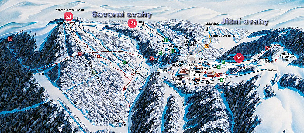 | Nazwa: Ski areál Červenohorské sedlo. Adres: Kouty nad Desnou 80, Czechy. Wyciągi: 1 szybka kanapa 4-osobowa (2 400 os/h), 1 orczyk (900 os/h) i 6 talerzyków. Ilość tras narciarskich: 2 czerwone i 5 niebieskich. Wysokość n.p.m: 1164 m. Różnica wysokości: 302 m. Całkowita długość wszystkich tras zjazdowych: 7,9 km. Najdłuższa trasa: 1 km. Trasy naśnieżane: Tak. Trasy podświetlane: Częściowo. Moja ocena ośrodka narciarskiego: 7,5 / 10